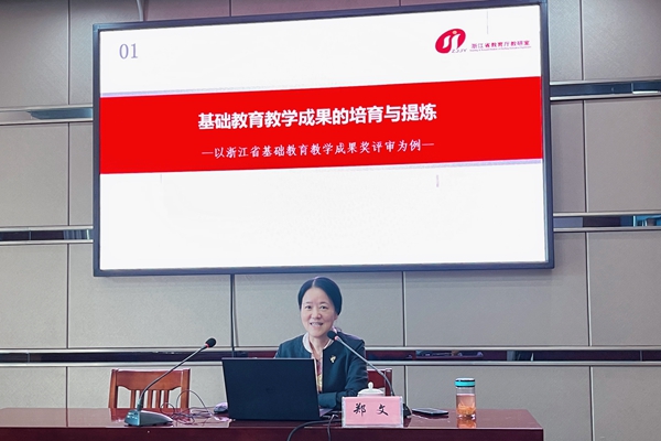 讲座结束后,郑文对省乡村教育研究中心拟培育的教学成果奖项目进行了点评,提出了建设性意见。