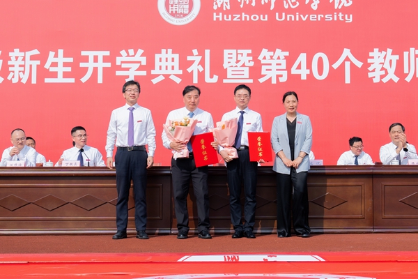 9月10日上午,我校2024级新生开学典礼暨第40个教师节庆祝大会在东校区长兴广场举行。校党委书记许慧霞,副校长(主持行政工作)盛况,校原党委书记金佩华,校党委副书记陈永华、丁敢真,副校长舒志定,校纪委书记任伟海,副校长潘音、李庆峰、楼建林,校党委委员、组织部部长劳士健,校党委委员、宣传部部长朱小芳,校党委委员、党校办主任沈国丰出席,学校相关职能部门负责人、各二级学院负责人、教师代表、辅导员代表、新生班班主任及2024级全体新生参加。典礼由丁敢真主持。