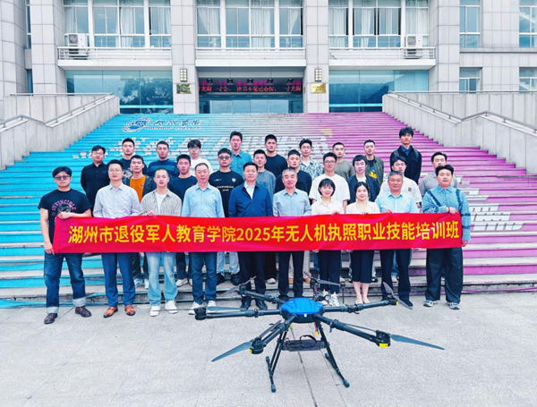 5月8日,湖州市2025年退役军人无人机培训班在我校与湖州市退役军人事务局共同成立的“湖州市退役军人教育学院”内开班。此次培训旨在帮助退役军人提升技能、拓宽就业渠道,为他们的职业发展提供新机遇。湖州市退役军人事务局党组书记、局长张振光,湖州市退役军人事务局移交安置处副处长何健,我校继续教育学院院长、党总支副书记刘世峰出席开班仪式。